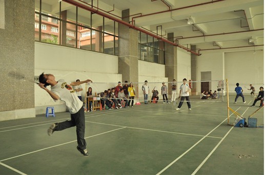 温暖的春风拂动着同学们参加体育运动的热情。为提高大学生的身体素质,丰富校园文化生活,2012年3月26日星期一,广东工业大学华立学院建设学部羽毛球比赛在图书馆室内羽毛球场火热开赛。