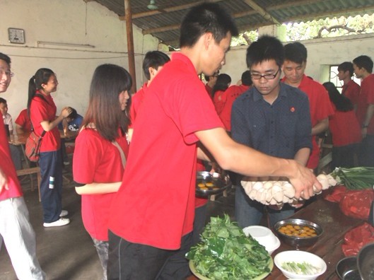 志愿者们炊事中