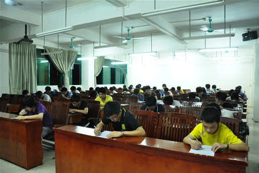 遇到不是很确定的题目果断跳过继续下面的题目,体现出成熟的考试技巧,有少部分的同学则在苦苦冥想打算马上攻克面前的困难。竞赛开始后30分钟就有同学提前交卷,自信地离开赛场。当被问到时他们微带笑容地说:“其实也挺难的,不过应该没有什么大问题!”。还有一部分同学则一直坚持到最后一秒,抓住每一个机会做详细的检查。虽然是活动的第一轮筛选但足以体现建设学子力争上游、勤奋好学的好风气!
