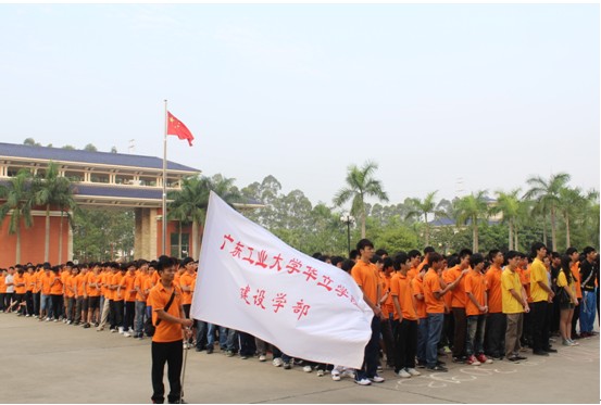 为了提高同学们的爱国热情,2012年4月23日星期一清晨7点整,建设学部在综合楼前广场举行升旗仪式。参加本次升旗仪式的是建设学部11级全体学生,仪式由11工管5班的郭柏辉同学主持。