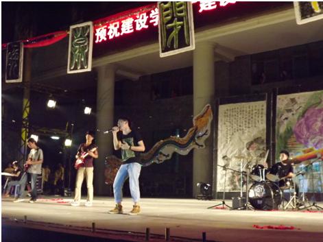 接下来,主持人为晚会揭开第一个表演节目。由棋积乐队表演的《温柔》,钢琴配乐,个人领唱,再添三吉他弦乐之悠美,爵士鼓的点缀,尽显温柔这一主题,其后再配上截然不同充满激情的《天与地》一曲,全场气氛更加热烈。