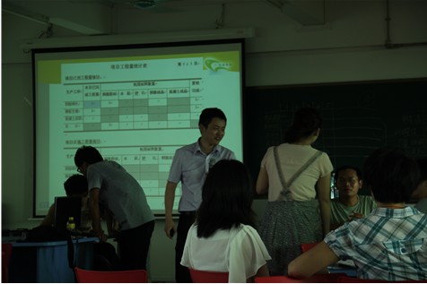 2012年05月15日下午,一节生动、有趣、实用的工程项目管理沙盘课程在综合楼804开讲。本次课非常荣幸地邀请到广联达培训讲师:贺翔鑫,为我们上这一课。