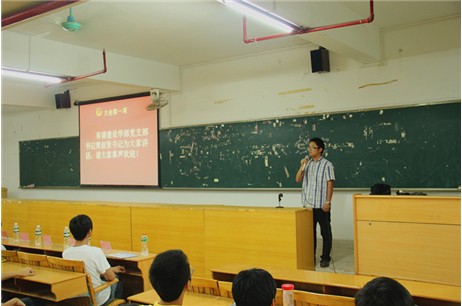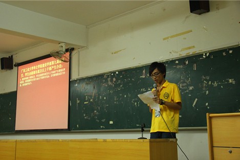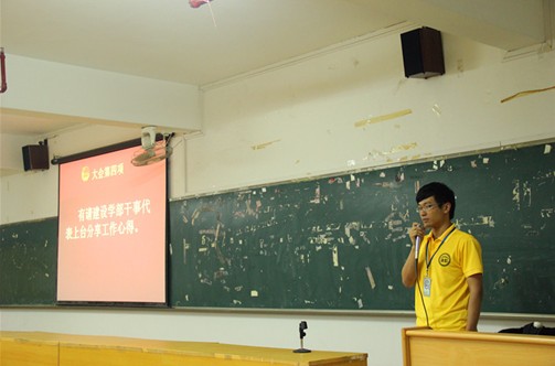 最后,在大会即将结束时,建设学部团总支副书记廖桂海上台发表讲话。希望每一干事学会尊重,学会做人处事的方法。呼吁大家一起参与到下一年学生会的迎新当中。最后要求在场的干事都学会感恩,感恩在这一年里一起度过的部长和同事。