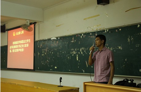 大会第七项由建设学部团总支·学生会书记杨智末发表讲话。杨智末书记首先对全体学生会的成员表示感谢,感谢他们在这一年来使学部的各个活动和工作都得以顺利开展,随即也对学生会的工作进行了小结。