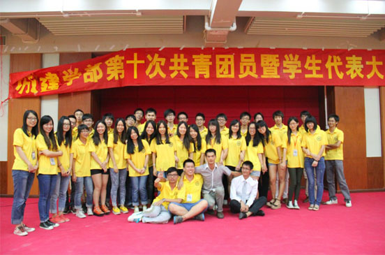2012年9月14号晚上,城建学部第十次共青团暨学生代表大会于3号报告厅隆重召开。会议主要内容是总结和汇报城建学部第九届团总支、学生会2011~2012年度的工作情况,并表决选举第十届共青团总支委员会委员和第十届共青团学生会委员会委员。
