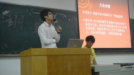为了进一步顺应并促进我校的发展,提高每个位城建人的综合素质以及各班班干的工作能力,在工作中严格要求自己,为同学们服务,为班级体做贡献。城建学部于2012年11月6号晚上6:00在3号楼209举办12级班干培训大会第三讲。此次大会邀请了12级辅导员严继超作为主讲嘉宾,团总支·学生会主席团、11级班干代表应邀出席了本次大会。