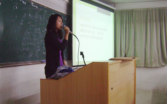 这次培训大会由心灵驿站站长龙嘉慧主持。首先她提出了本次敬老院之心的宗旨是“爱驻夕阳,关爱老人“。随后,她播放了一则上届师兄师姐到敬老院活动的宣传短片,看到视频中老人灿烂的笑容同学们内心澎湃,更加坚定了要前往参加敬老院活动的决心。最后,龙嘉慧师姐强调了敬老院之行的注意事项,特别强调了礼貌问题并将73名志愿者分成5个慰问组、2个表演组和1个清洁组。每组都由1个小组长负责,每个小组长也都上台讲话,认识了各自的组员。