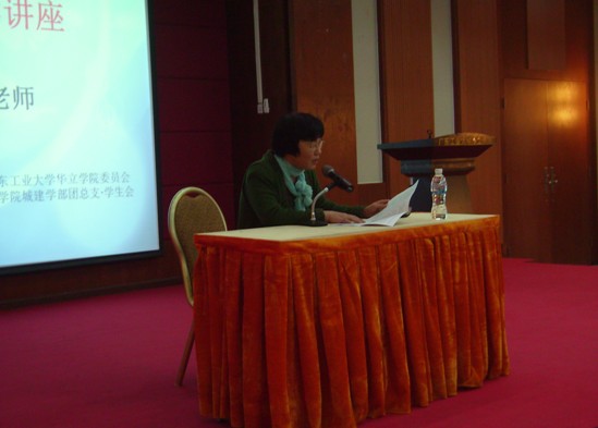 2012年12月12日下午,广东工业大学华立学院城建学部“规划几何大学讲座”于图书馆三号报告厅举行。本次讲座有幸邀请到资历深厚的熊萍老师作为主讲,学部常务副部长卢集富、学部团总支书记杨智末和学生会各部门的部长莅临本次讲座。