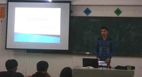为了让三下乡活动更顺利的开展,让参与人员彼此认识了解,2014年3月18日晚上7点半,城建学部三下乡活动动员大会在第五教学楼705室召开。出席的嘉宾有城建学部团总支•学生会主席:邝毅聪、副书记:赖伟俊、副主席:陈厚良、林妍丽、苏伟恒,心灵驿站站长杨康,副站长杨捷憧。