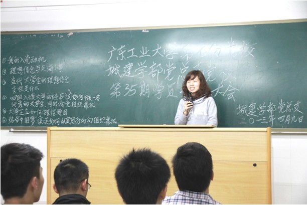 为了进一步加强对入党积极分子的教育,贯彻落实广工大及学院党委关于举办第35期党校培训班的工作,2013年4月9日晚,城建学部党总支组织党校学员参加第35期党校学员动员大会。本次会议由黄阳华同志主持,本学部党总支书记黄叔贤和指导老师邹小丽到场参加,并鼓动学员们积极投入本次党校学习。