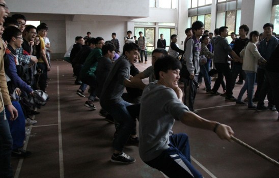 城建学部于4月11日 下午5点整在图书馆羽毛球场举行了拔河比赛的第二轮。经过前一天激烈的比赛,晋级第二轮的队伍将更具实力,队员们雄心壮志、激情四射,满怀着一颗取胜的心。相信今天将会上演一场精彩绝伦的比赛。