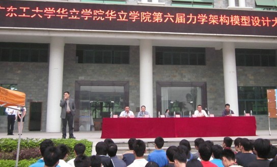 为了同学们把耳目所学的知识运用到实践中,将知识与动手能力融为一体,激发同学的创新能力和学习热情,广东工业大学华立学院于2013年4月16日下午在其学院综合楼前举办一年一度的品牌活动---力学架构比赛。