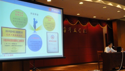 2013年5月16日15:20 “深圳中海监理公司到我校举行招聘宣讲会”在2号报告厅举行。