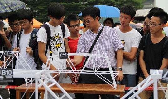 这次大赛迎来一个“骄阳似火”的天气,可现场的评委和观众仍旧兴致勃勃,对现场的力学架构模型进行了热烈的讨论和评价,来自我院的作品得到评委老师的好评,这极大激励和鼓舞了我学院的参赛选手。