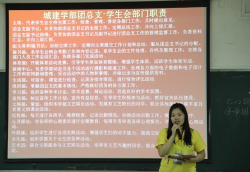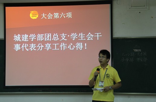 大会第四项,由城建学部团总支学生会干事代表分享了近一年来的工作心得。