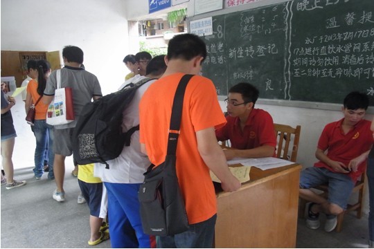 城建学部党总支学生管理办公室成员认真为每个新生登记资料