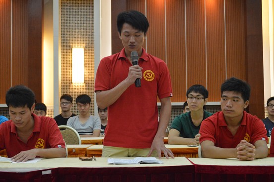 书记动员完毕后,在场的同志开始展开讨论对于学院设置“党员示范岗宿舍”,广大党员同志搬进新生宿舍这一群众路线中遇到的问题和分享自己住进新生宿舍后的感觉。根据同志们反映,住进新生宿舍后能得到新生的信任,自己也乐意去引导他们尽快适应大学生活。