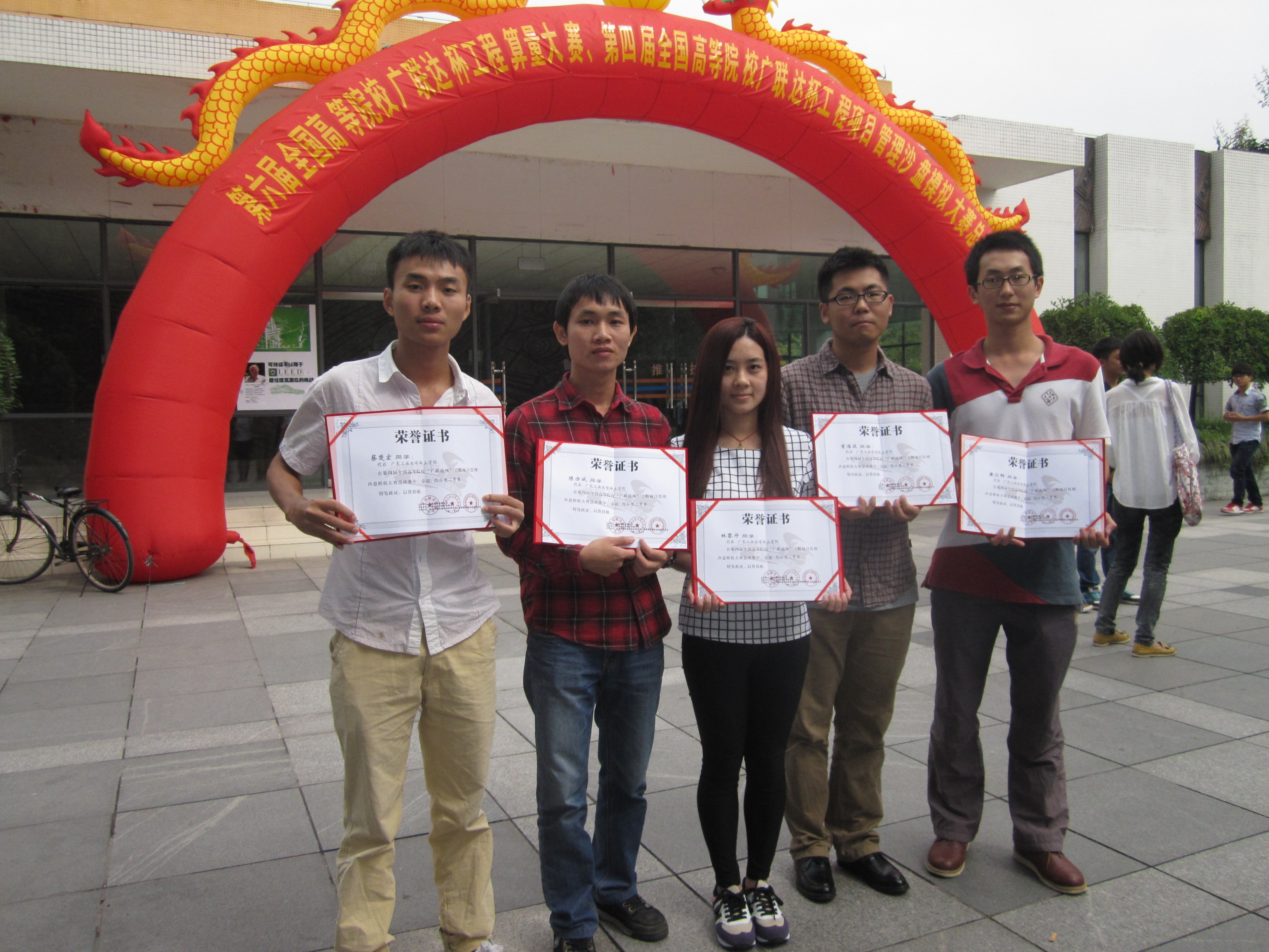 9月28-29日,由中国建设教育协会主办的第四届全国高等院校“广联达杯”工程项目管理沙盘模拟大赛总决赛在陕西省西安市西安培华学院和重庆市重庆科技学院南北两个赛区同时举办,来自全国各地400多所高等院校参加了比赛。我院城建学部2011级工程管理专业林黎丹、陈亦斌、蔡楚宏、黄欣畅、曾浩波5名学生组成的参赛队由王晓轩、方梨梨、卢集富老师指导参赛,荣获全国总决赛二等奖。