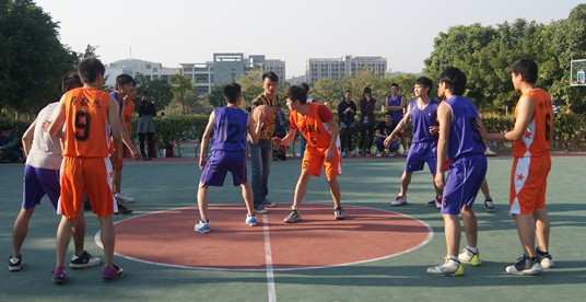 为了丰富大学生的课余生活,广东工业大学华立学院城建学部于2013年12月3号在篮球场上举办篮球比赛。