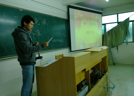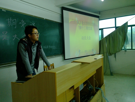 为了进一步加强党的建设,端正同学们的入党动机,加强同学们对党的性质和党的指导思想的认识,提高其思想觉悟,我学部于2014年3月5日17点10分开展了城建学部第十三期党课学习班的开班动员大会。城建学部党建工作指导老师邹小丽、组织委员林宇、学部党务秘书、学部部分负责党课的学生党员以及各级班级团支书和积极分子参加了本次的动员大会。