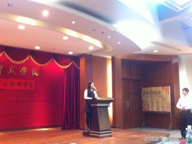 然后是杂志主编胡泽灿的发言,他说在路上追梦,《思域》就是我们的梦想,在踏上这条路之前,我很犹豫,一直怀疑自己,对自己的想法不确定,但很庆幸的是在这条路上不只是我一个人在走,城建学部学生管理办公室的成员们,一路上有你们,真好!