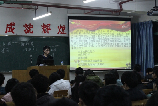 授课党员激情洋溢地介绍党的十八届三中全会,引导学员了解其内容和引发学员们的思考。