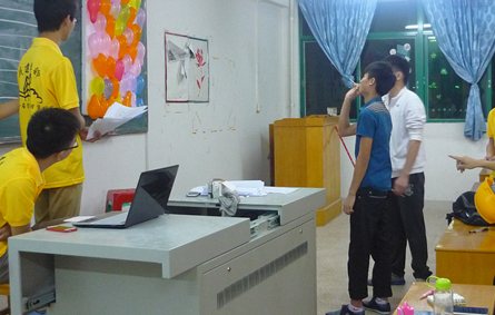 本次比赛分为三个环节,第一环节:笔试,其中试题涉及的内容有生物、体育、地理等常识;第二环节:情景题,给出两个视频,参赛的同学要留意视频中的细节,在主持人问出问题后,拨打电话抢答;第三个环节:绝密关,用五根筷子射黑板上的气球,回答射中气球里相对应编号的问题,里面的问题包括数学题、历史题、生活小常识等。这次比赛中一共有15组到场的选手,每两位同学组成一组。比赛竞争十分激烈、精彩。
