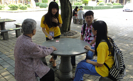 上午8时30分,城建学部团总支•学生会心灵驿站干事与学生志愿者一行65人在升旗台下集合。经过短暂的车程,在上午9时15分到达了增城市颐养院,为了尽可能将爱心送到各位老人家,志愿者们被分成慰问组和表演组。