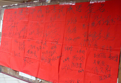 最后到场的各位班干部在考试诚信纸上签名。