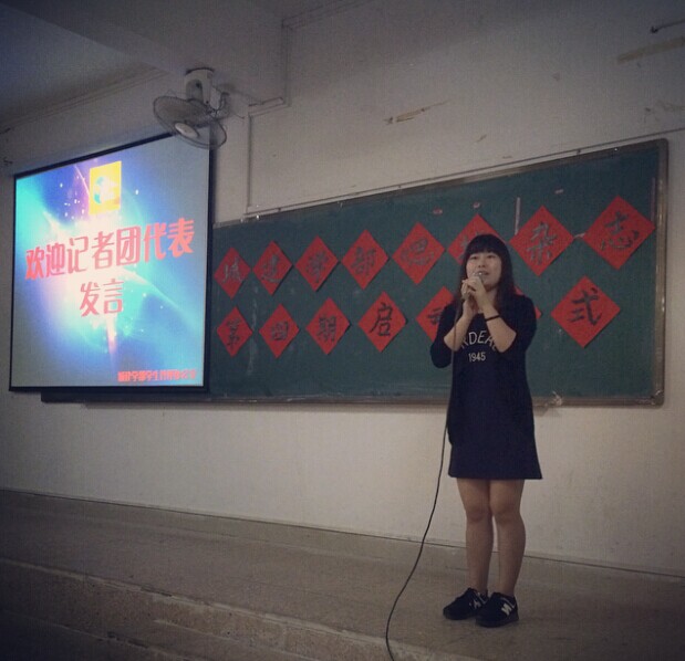 院记者团代表上台讲话。她表示希望在新一期的合作中,记者团能与办公室能擦出不一样的火花。最后,她祝愿思域杂志越办越好!