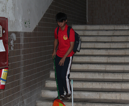 下午五点十五分,参加这次活动的工作人员和各班同学们都准时到达了活动现场--C6、C7、C8宿舍区。此时正是休息时间,大家都还没有吃饭,而且人流量很大,可是同学们没有一句埋怨,拿起工具就开始打扫卫生。楼梯,走道,排水沟等各个角落都安排了人员打扫,分工明确,效率十分高。短短大半个小时便完成了工作,可见合作的重要,而且整个过程纪律严明,每个人都专注于自己手中的任务。