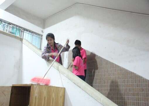 办公室全体成员热情高涨,积极响应“爱健康,爱卫生”活动,大家分工合作,将宿舍楼的走廊、楼梯间仔细地清扫了一遍,为学校的清洁、保持宿舍舒适环境奉献出自己的力量。