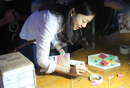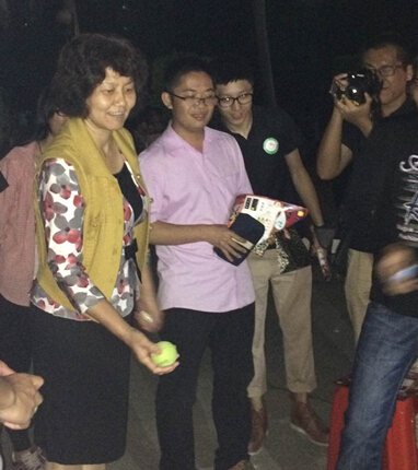 台上有精彩的表演,台下也有有趣的游戏。此次晚会共有25个摊位,同学们各自拿着印章纸,在25个摊位间玩游戏,集满印章,赢取奖品,为心中的最佳摊位投票。而莅临晚会的嘉宾也兴致勃勃,纷纷参与其中。王锦绣和黄叔贤书记来到摊位前面,玩起了推箱子的游戏,这颇费脑力的游戏一点也没难到书记,不一会儿箱子便被推到指定位置。随后,两位嘉宾还参与了抽奖和其他有趣的游戏:投篮、吹蜡烛、夹弹珠等等。咋一看去,两人宛若是两个在摊位间穿梭游戏的大学生,充满青春活力。