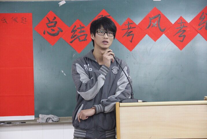 代表李文威同学采用幽默的方式帮助我们回顾本次总结大会的内容,让我们对本次总结暨考风考纪动员大会的各老师、