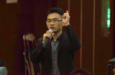 图为聚光塔创业招聘网创始人梁坤先生作创业经验分享