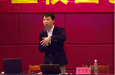 图为广东晨轲投资有限公司总裁贺宏朝先生发言