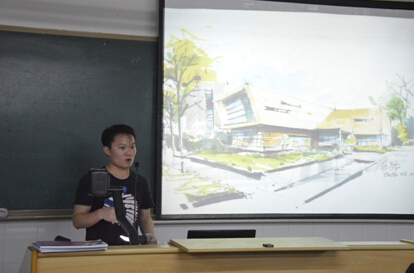 2015年5月5日晚上7点,城建学部有幸邀请群英手绘的创始人许树贤、陈路老师,为14建筑1班、14建筑2班的同学开设了主题为“手绘技法与设计创意”的讲座。在大约6点50分,同学们已经陆续到场。