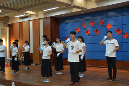 在五支队伍分别表演完之后,每组的指导老师上台为自己的参赛队伍拉票,各组的指导老师也都十分有创意,纷纷施展自己的才华,精彩的表演也使得全场的气氛活跃起来。随后,由嘉宾上一届心灵驿站干事投票,每十票计一分,再计入总分。最后,评委也对各个队伍做出点评。