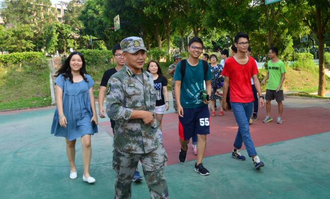 2015年8月24日,新生们基本都已到校报道完毕,准备着迎接为期10天的军训生活。而今天下午,他们将在篮球场中集合,与一起度过这10天的教官见面。同时,为了更好的了解新生的状况以便布置适合强度的军训任务,党总支书记黄叔贤决定在这个时候巡查新生们的状况。