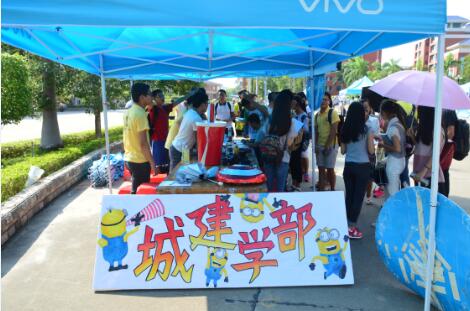 2015年9月7号,城建学部团总支·学生会与学院其他的组织都已在综合楼广场前及第一饭堂水池周边搭起帐篷,摆开了招新的摊位。