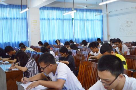 17点左右,党团促进中心和青年志愿者的干事到达考场,准备有关笔试的相关事宜。随后,“你来我党”的参赛者们也陆陆续续进入考场,他们有的激情洋溢,对本次笔试表现出极大的信心,但也有的表现得十分不安,担心自己会忘记某些知识点。但无疑的是,参赛者们都很看重这次考试。17点25分监考员开始发卷,随着试卷的传递,考场气氛开始紧张起来。参赛者们时而停笔冥思苦想,时而落笔龙飞凤舞,偶尔被难题困住眉头紧锁,偶尔解开难题笑容绽放。时间一点一滴的过去,试卷一空一空的填满,当第一个举手提前交卷的参赛者交上试卷时,本次考试的倒计时便已开始。当监考员收起最后一份试卷,本次考试的结果也已成定势。但无论如何,汗水不会白流,付出了肯定就有收获。