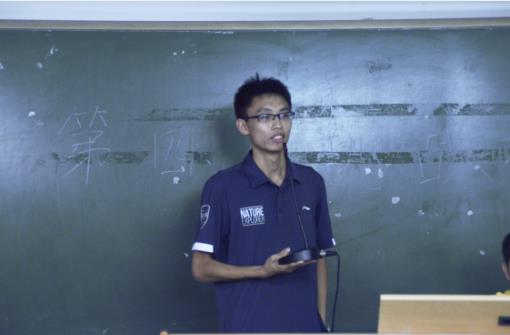 紧接着,莫浩明师兄给同学们讲解”挑战杯”大赛的大致情况,他介绍了他本人从最初的无从下手到最后获奖的过程,在这个过程中,他学到了许多东西,不仅拓展了视野,也丰富了自己经历。此外他还强调光有创新是不够的,还要考虑创新的产品能否推向市场,能在市场中获取利益。莫浩明师兄在给同学们讲解之余,还与同学们进行互动问答。最后,他还建议大家不要在意最后的名次,要怀着主去体验的心态,因为在这个过程中,你所收获到的东西是不可估量的。