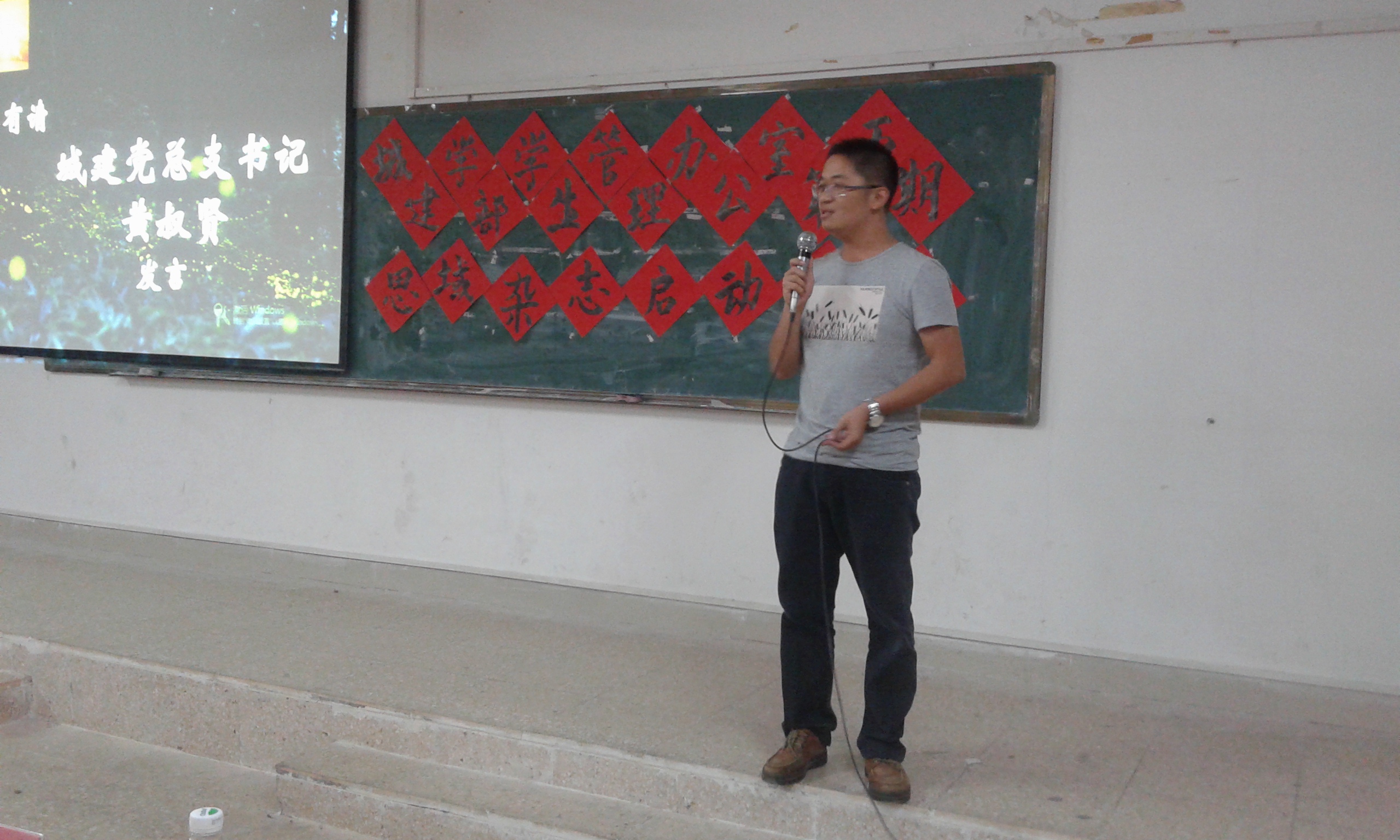 《思域》杂志启动仪式正式开始,首先上台发言的是城建学部党总支书记黄叔贤书记,他强调同学及各位干事要努力为思域杂志做宣传,同时恳切希望同学们能够在思域杂志这个文学舞台上能够大放异彩,为思域杂志增添多一份光彩,也盼望同学能够在大学时光里留下更多充实而美好的回忆,以及感谢为思域杂志付出贡献的全体人员。最后,他祝愿我们思域杂志能在新一代干部干事的努力下能够再接再厉,越办越好。