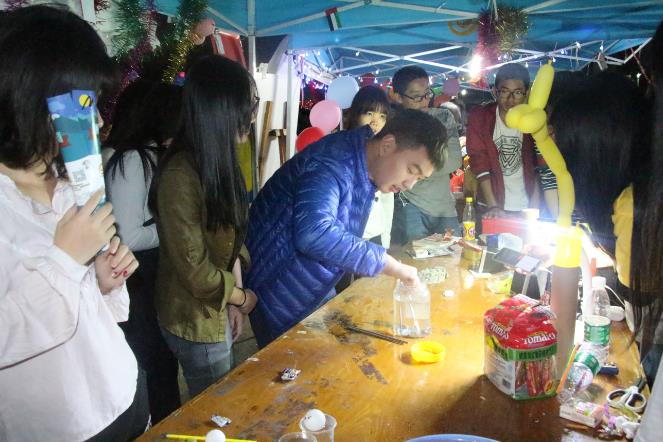 文艺表演结束后,便开始了拉票环节,22个班级前往舞台进行拉票,“泰国人妖”、个人独唱等精彩表演纷纷上阵,每个摊位都使出了浑身解数,现场气氛十火爆。台上在进行拉票的同时,台下也是一番热闹非凡的景象。各个摊位为了吸取眼球准备了各类的游戏及奖品,每个摊位前都挤满了前来玩游戏、观赏、盖章的同学,气氛甚是热闹。最后,经过紧张又激烈的拉票环节,3号摊位15造价一班获得最佳摊位奖。
