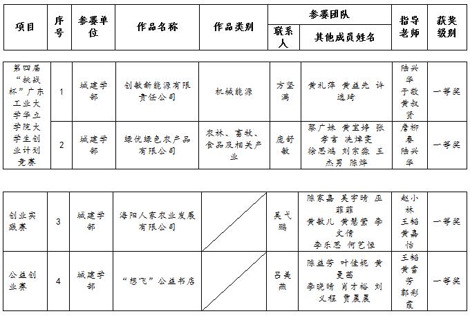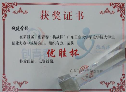 喜庆城建学子在第四届“创青春•挑战杯”广工华立学院大学生创业大赛中荣获佳绩