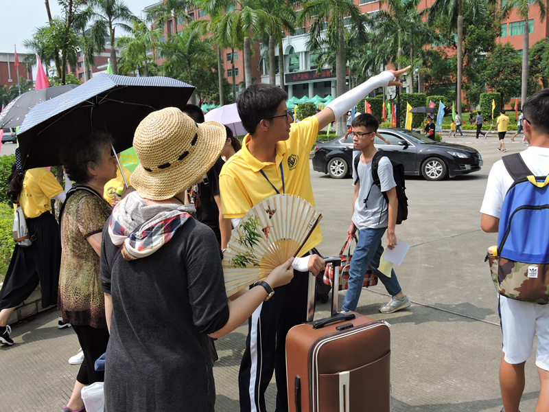 夏日虽热,但热情却盛。2016年8月20日是广东工业大学华立学院大一新生正式报到的日子。早上7点,迎新的工作人员早已经在校内的各个地方做好充足的准备迎接新生,此次的迎新工作主要有接待新生家长、维持校内交通秩序、带领新生走程序办理各种入学手续以及帮助新生搬运行李到宿舍。其中,带领新生走程序办理入学手续是最为繁琐也是最为重要的一部分,其中分为七个部分,每个部分都会有相应的工作人员负责,从而让新生报到能够顺利进行。天气虽热,但现场的每位工作人员都认真地去完成各自岗位上的工作,尽心尽力的去引导新生报到,均以自己最大的热情和最好的精神面貌来迎接新生。在迎新工作的尾声,我们也有幸采访到了书记,书记说出了对我们学生会的迎新工作表示肯定。