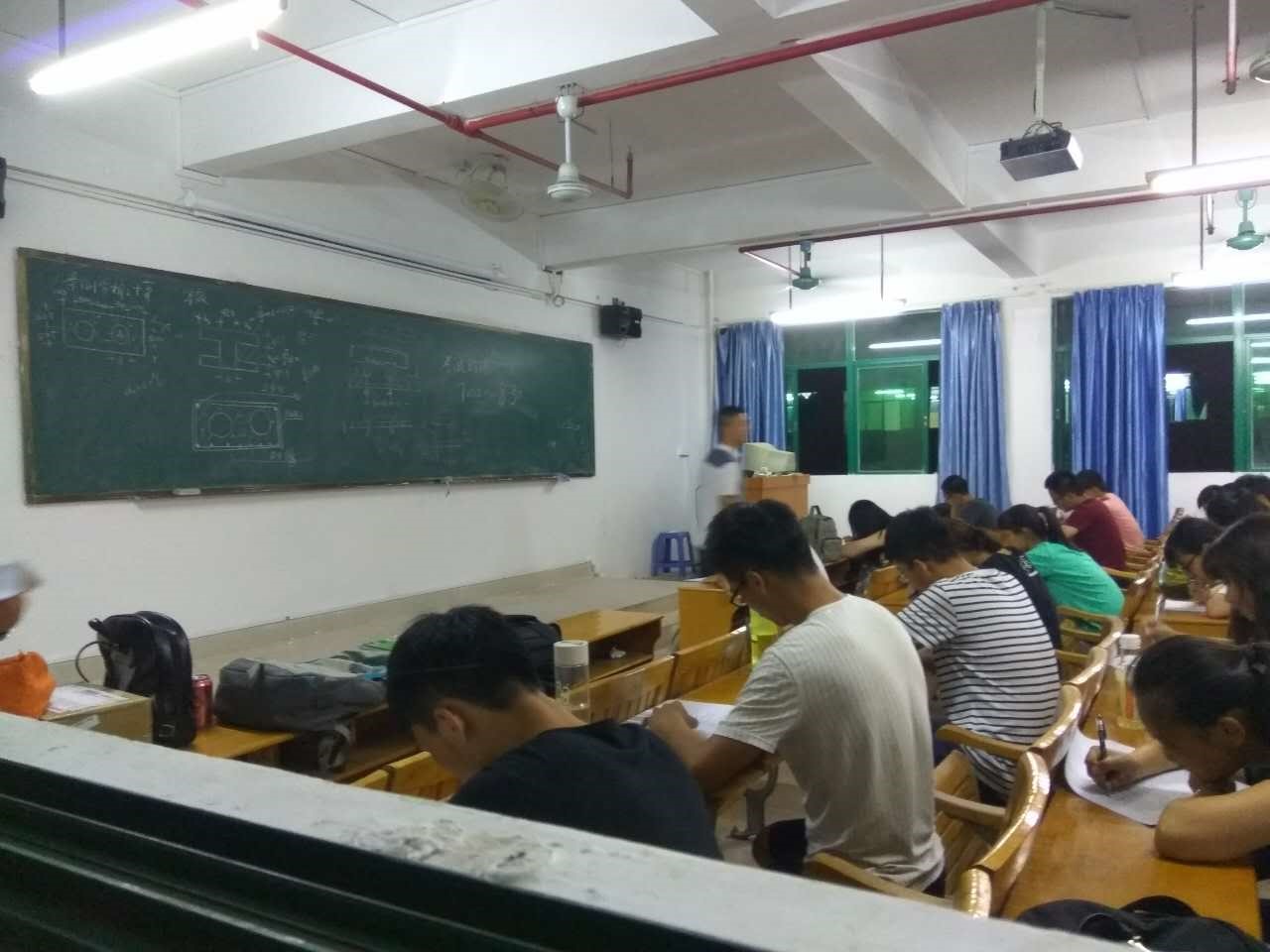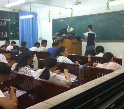 19点左右,负责监考各班的监考员都已携卷进入考场,并有条不紊的收集学生的学生手册,整顿考场秩序。整个考场凝聚着一种紧张的氛围。
