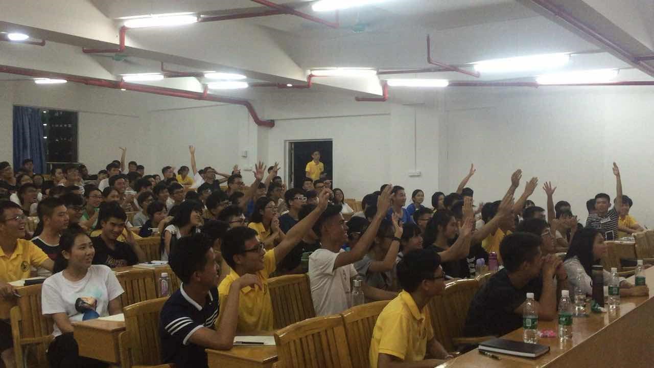 下一环节,学生会主席叶文良师兄上台为大家分享了做班长的经验以及作为班长应该如果让每个班委发挥出自己的作用,叶文良师兄曾任班长之职,对班干需要做的事深有了解。就怎样管理好一个班级进行了讲话,并与同学们积极互动,同学们热血沸腾,争先恐后地向师兄提问。现场气氛活跃,各个新任16级班干们都积极表达自己所想到的问题,一一向文良师兄寻求解答。