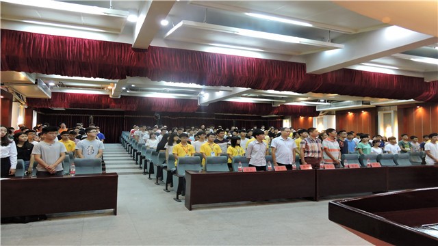 会议第一项是奏响团歌,全场起立。在庄严的团歌结束后,会议正式开始了。首先由卢集富部长进行致辞,祝愿每个参赛的学生都能够发挥出自己的水平取得优异的成绩。