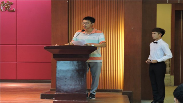 会议第四项由优秀学生代表莫浩明上台分享他参与挑战杯的经验,讲述了他当时参与挑战杯的经历。他曾在挑战杯等学术性竞赛中获得国家级以及省级表彰6项,校级多项奖项。以及申请专利5项。这些的成果都是他以及他的团队废寝忘食而达到的。他也告诉所有的同学要珍惜大学的时光,做一些自己不敢做的事,让大学变得更有意义。相信他的经验一定能帮助到所有敢于挑战自己的同学们。